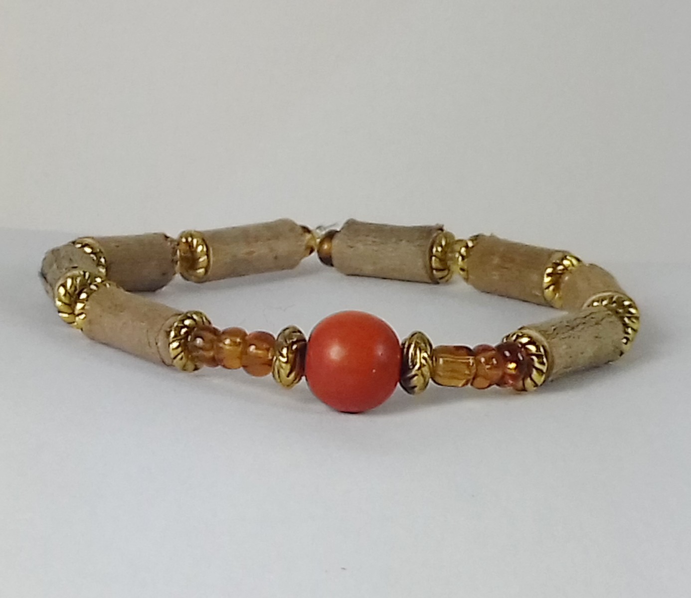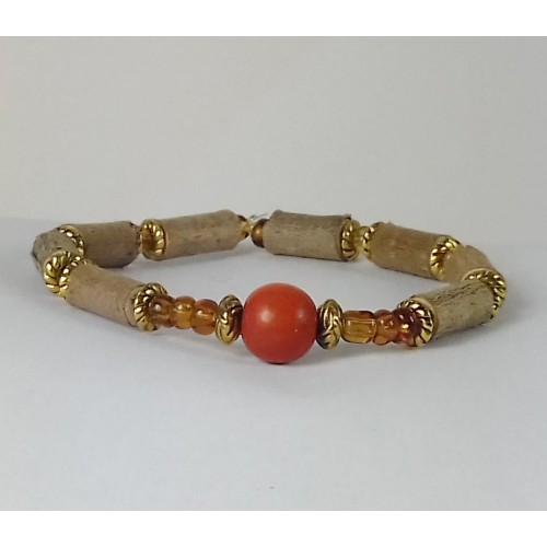 bracelet en bois de noisetier et graine açaï avec intercalaires de perles de"rocaille".